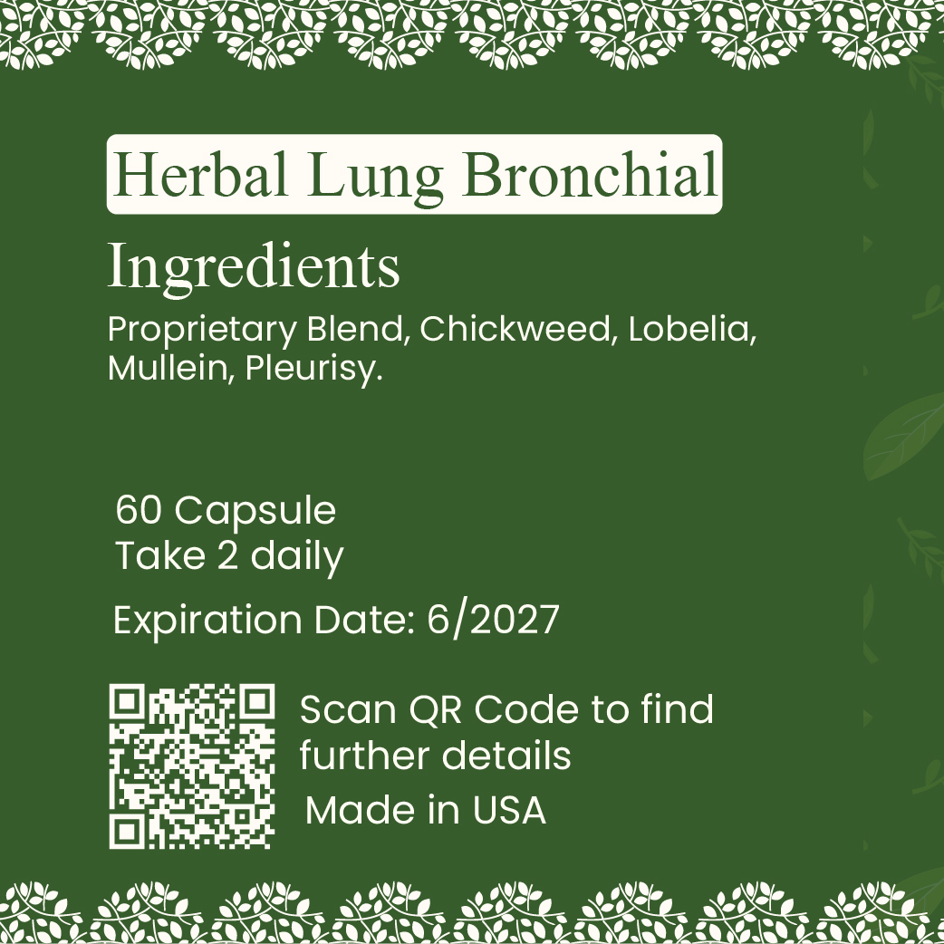 This potent blend combines the healing properties of Chickweed, Lobelia, Mullein, and Pleurisy root to deliver comprehensive respiratory support. Chickweed acts as a gentle expectorant, helping to clear mucus and ease coughs. Lobelia is known for its bronchodilator effects, relaxing the airways and improving airflow. Mullein has long been valued for its ability to reduce inflammation and soothe irritated respiratory tissues. Pleurisy root helps repair lung membranes and relieves chest discomfort associated with respiratory infections. Together, these herbs create a synergistic formula that not only alleviates symptoms but also promotes long-term lung health. Herbal Lung Bronchial is your natural ally for respiratory repair and enhanced breathing.