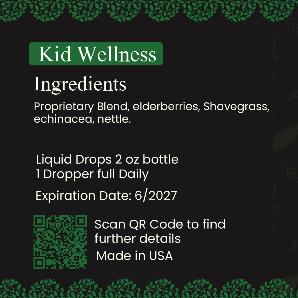 Kid Wellness by DNA Global Herbs is a specially formulated liquid drop designed to strengthen and support the immune system of children. Packed with natural ingredients, this gentle yet powerful blend helps protect young bodies from common seasonal illnesses and promotes overall health and vitality. The easy-to-administer liquid drop format makes it simple for parents to provide their kids with daily immune support without the fuss of pills or capsules. Ideal for children of all ages, Kid Wellness encourages a balanced immune response, helping kids stay active, healthy, and resilient. This supplement is an excellent addition to any child’s daily wellness routine, especially during cold and flu seasons or times of increased exposure to germs.